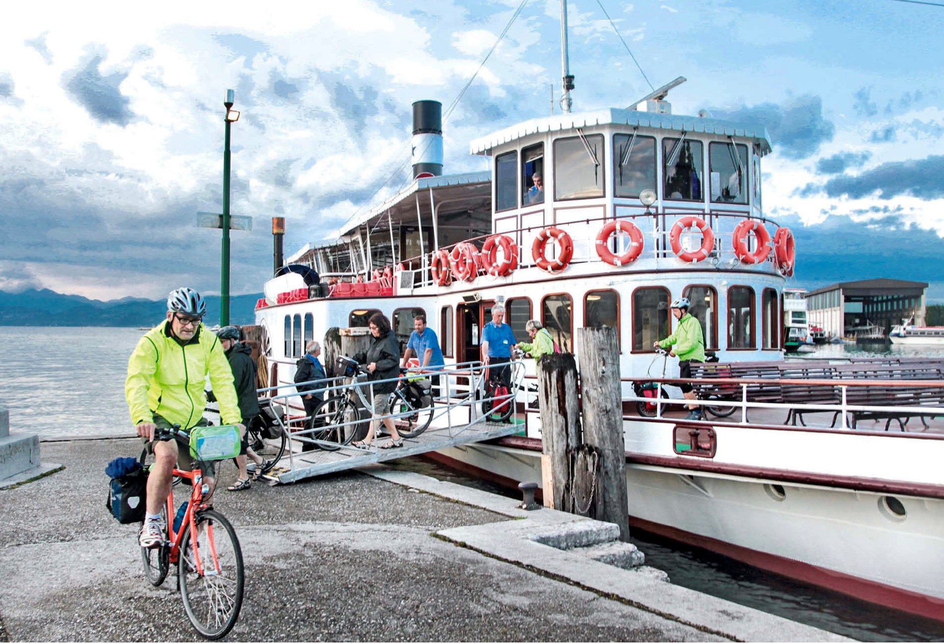 Always pedaling along the Adige you reach Rovereto and Mori. From here westwards towards Lake Garda. After a short ascent, a refreshing descent will follow and lead you to Torbole and to Riva. The ferry cruise takes you to the southern part of the lake.